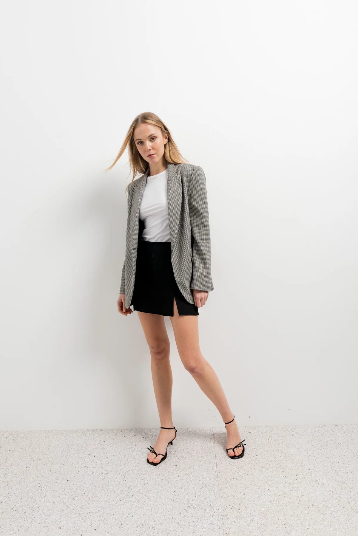 Saia calção com abertura na frente.